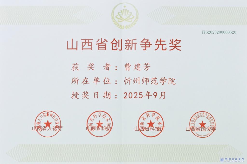 9月15日,第二届山西省创新驱动发展大会暨2025年山西省科协年会在大同举办。会上表彰了第一届山西省创新争先奖获奖者。我校科研部部长曹建芳教授被山西省人社厅、山西省科协、山西省科技厅、山西省国资委授予“山西省创新争先奖”。