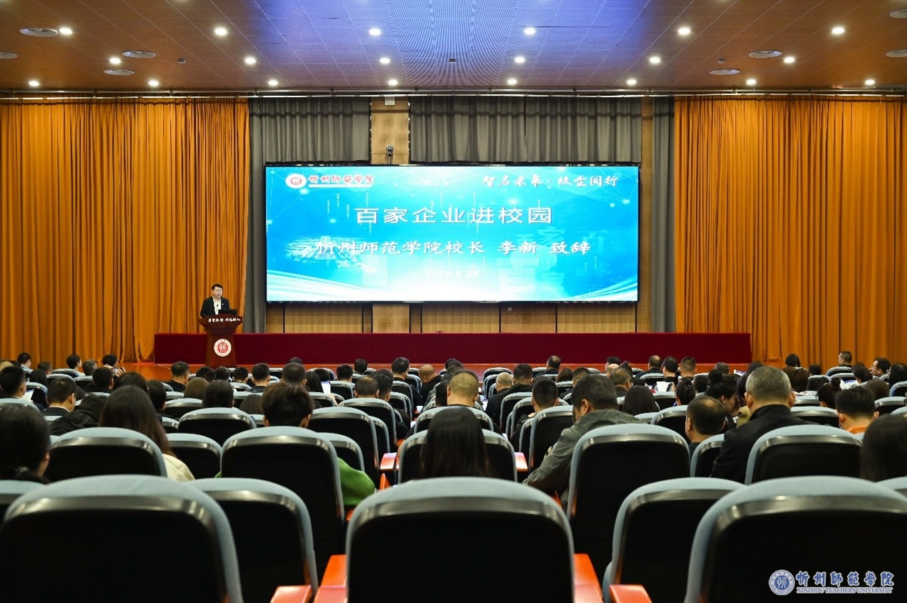 李新致辞,代表学校向出席活动的企业及行业代表表示热烈欢迎,对省教育厅、忻州市委市政府及地方有关单位长期以来对学校的关心支持致以衷心感谢,介绍了学校基本情况及中长期发展规划等。他表示,高校只有与地方经济社会发展同频共振,才能赢得未来。当前省委、省政府“转型创新、科技强省”战略部署与忻州转型升级推动高质量发展的实践,为学校深化校企合作、产教融合提供了前所未有的机遇。学校将以举办本次活动为契机,进一步明确应用型高校发展路径,持续优化学科专业结构,强化产学研平台建设及与地方政府、行业企业的战略合作,努力增强与地方产业需求的匹配度,与各方面携手推动教育链、人才链与产业链、创新链深度对接,为忻州乃至山西高质量发展提供更大助力。